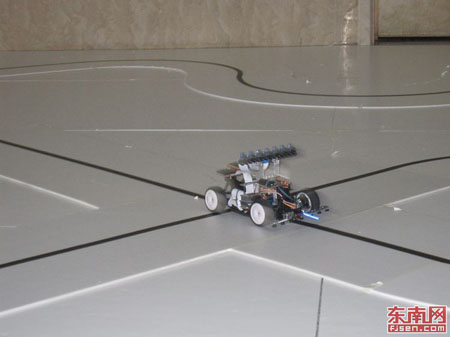 图为杭州科技电子大学在全国大学生智能车设计竞赛中的特等奖作品。智能汽车竞赛,要求参赛者通过识别道路传感器、设计电机驱动电路,编写相应软件以及装配模型车,制作一个能够自主识别道路的模型汽车,按照规定线路进行,以完成时间最短者为优胜。图中黑色线为模型汽车行走线路。