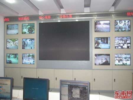 上图为杭州科技电子大学的校园110监控室,这个校安工程共投资400多万元。主要是用于保护学生、校园的财产安全,及时制止学生的不良行为如轻生等。