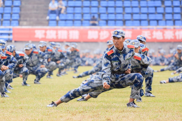 庄严的升旗仪式后,军训总结大会正式开始。伴随着雄壮的中国人民解放军军歌,军训师各团方阵高喊口号,精神抖擞、士气高昂地通过主席台,接受部队首长和学校领导的检阅。分列式后,参训学员进行了精彩的军训方阵表演。军体拳方阵出拳虎虎生风,一招一式刚劲有力;特种兵技能表演和军体啦啦操,一个威武强健,一个柔中带刚,一边是铁骨铮铮的汉子,一边是巾帼不让须眉;战术基本动作及进攻防御表演则模拟现代战争场景,学员们在硝烟弥漫的战场上,时而卧倒隐蔽、迂回前进,时而冲锋陷阵、勇往直前,直至攻陷敌营,赢得胜利。“笃学力行,守正求新”,队形编字表演将新校训整齐地用彩旗刻画出来,给到场领导和部队首长留下了深刻印象。校武术队也带来了精彩的武术表演。