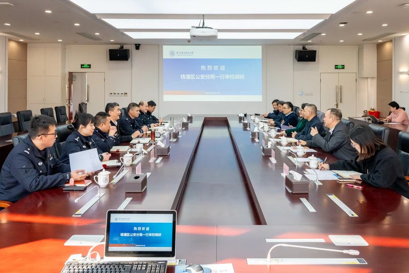 2月17日下午,钱塘区副区长、政法委副书记、区管委会副主任、公安分局党委书记、局长赵志军一行7人,来校就校园安全稳定工作及亚运筹备工作等事宜开展调研。我校党委书记王兴杰、党委副书记钱波、副校长杨勇出席会议,亚运筹备相关领域负责人参加会议。