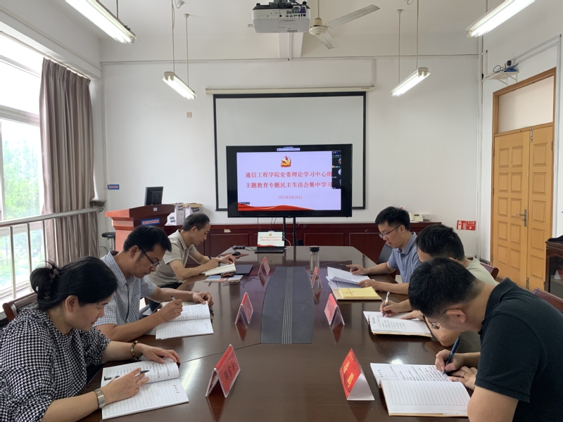 8月26日上午,通信工程学院党委理论学习中心组举行学习贯彻习近平新时代中国特色社会主义思想主题教育专题民主生活会会前集中学习研讨。学院党委书记何宏主持会议并讲话,理论学习中心组成员参加会议。