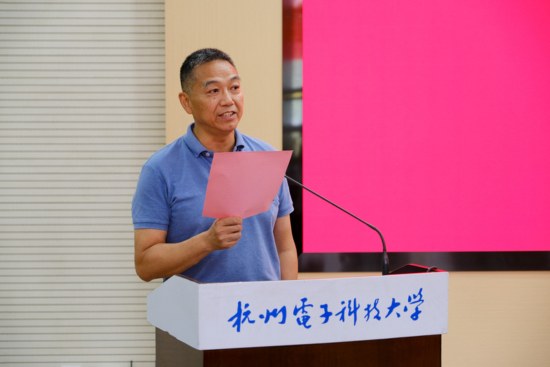 网络空间安全学院陈临强教授作为退休教师代表发言,他饱含深情地回顾了在学校工作36年间的峥嵘岁月,几度哽咽。36年间他见证了学校多领域多方位的飞速发展,感慨杭电就像一辆高速前进的高铁列车,为能在杭电工作而感到十分骄傲,并向学校送上最真挚的祝福。