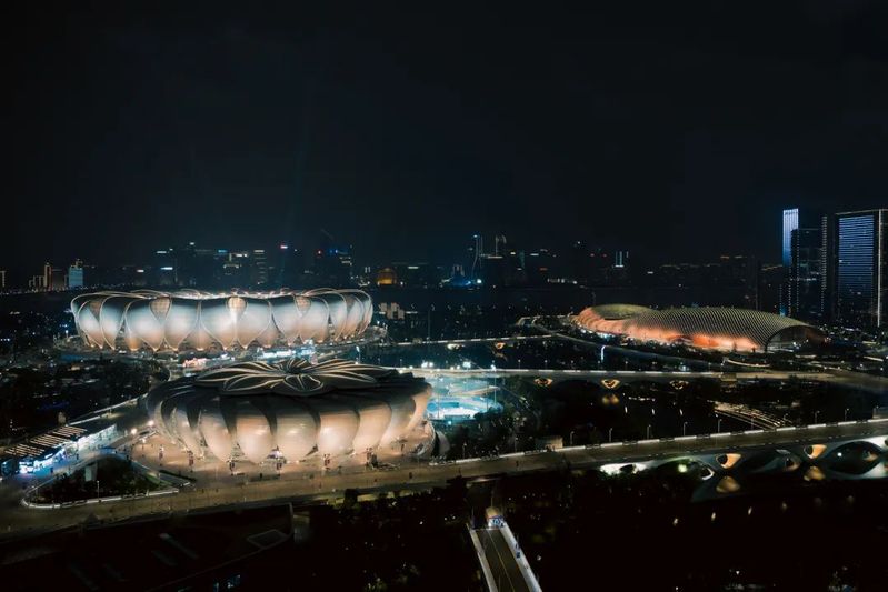 (杭州亚运会总指挥部MOC“玉琮”夜景)
