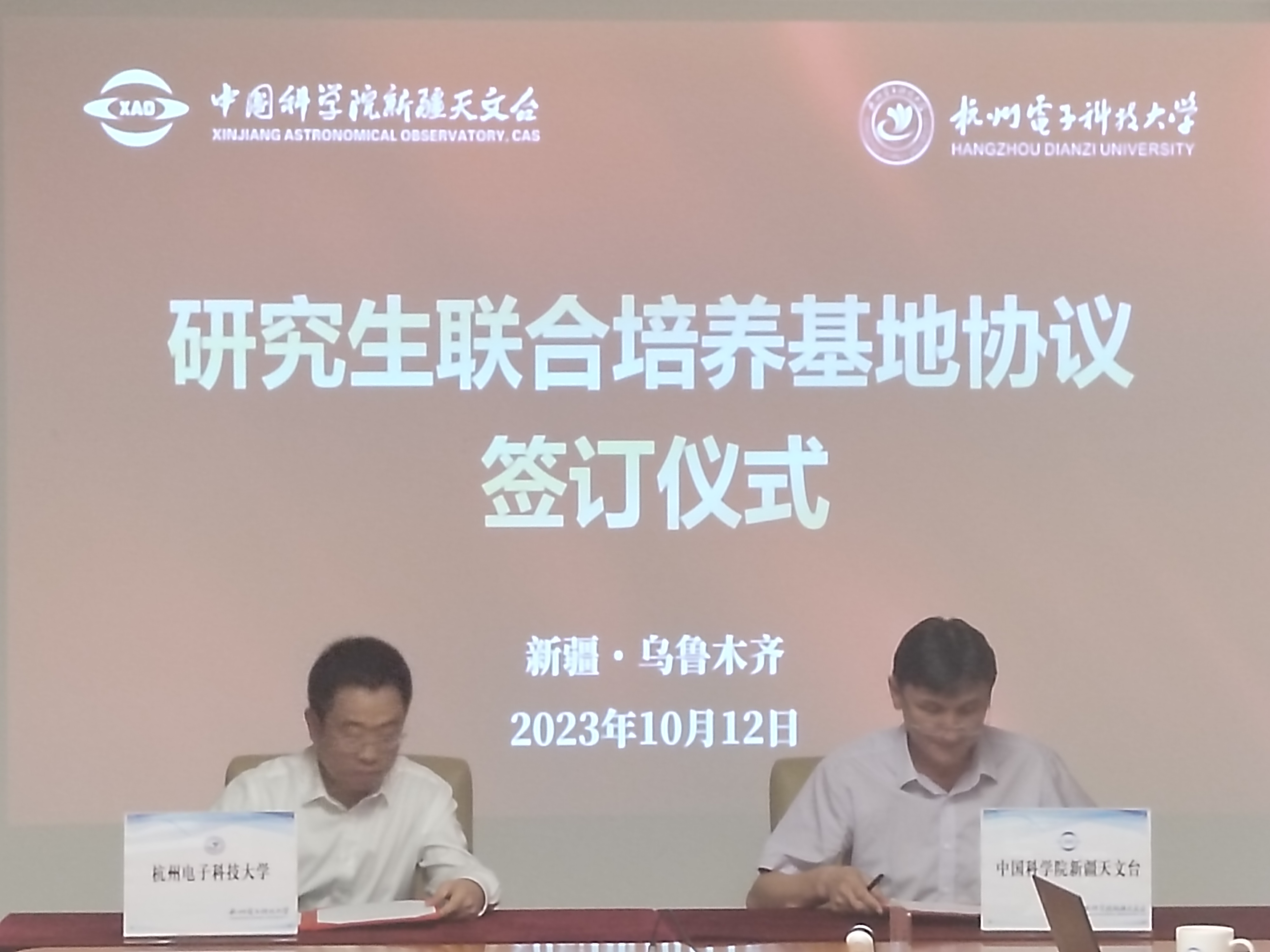 马国进介绍了学校的办学理念和近年来学校科研发展情况。他指出,近年来学校发展势头迅猛,国家级科技类获奖、科研项目、科研经费与产学研合作平台的数量稳步提升,列位浙江省属高校前列。中国科学院新疆天文台科研实力雄厚,紧密围绕国家创新驱动发展、西部大开发和“一带一路”等重大战略做出了卓越的成绩。杭电集中了大批优秀人才和科研资源,双方联合发展深空探测装备,将迸发出更多的科研活力、产出更多的科研成果。