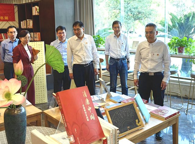 10月24日下午,校党委书记王兴杰、纪委书记牛东红、校党委副书记戚明钧、纪检监察室主任张武标、机关党委书记袁秀川、理学院党委书记吴一桥、宣传部副部长伍超、纪检监察室副主任王珺等前往力行书屋参观了第三届廉政文化月主题书展,图书馆馆长徐明、副馆长叶仁道陪同参观。