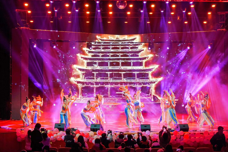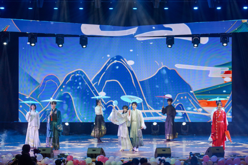 艺术展演中,各大节目或气势恢宏,或美轮美奂,为现场观众带来一场视觉饕餮盛宴。校大学生艺术团爱E乐团、乐雅民乐团带来《流浪地球组曲》《华尔兹圆舞曲》《清平乐》表演,以声赋艺典韵,以乐交融古今;模特队、清影舞队的《逐灯寻迹:最忆非遗旅》《沁莲》,展现了中国传统文化的魅力,让人领略古风之美;辅导员代表献上小组唱《夜空中最亮的星》,歌声指引着每一个追梦人努力前行。