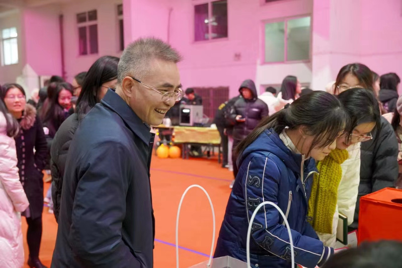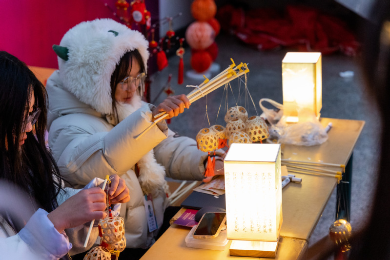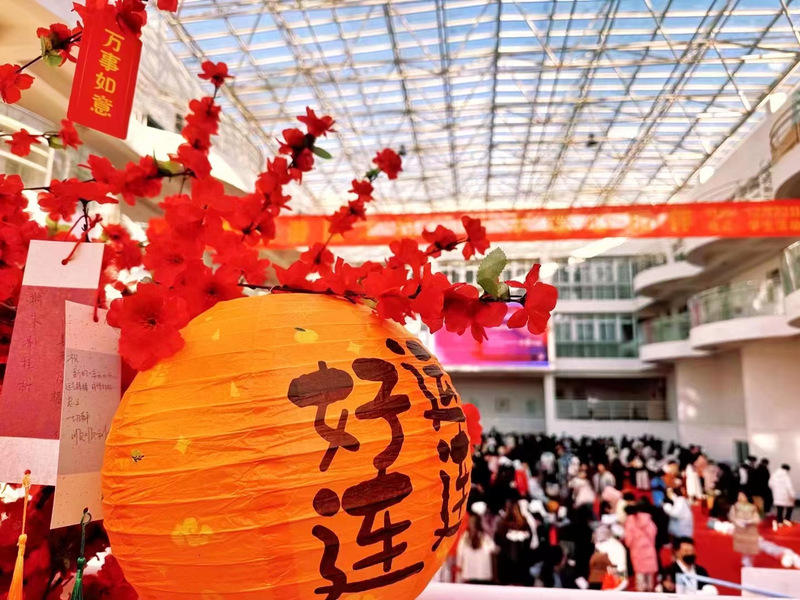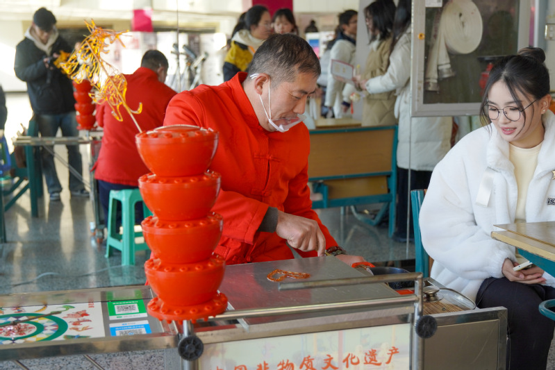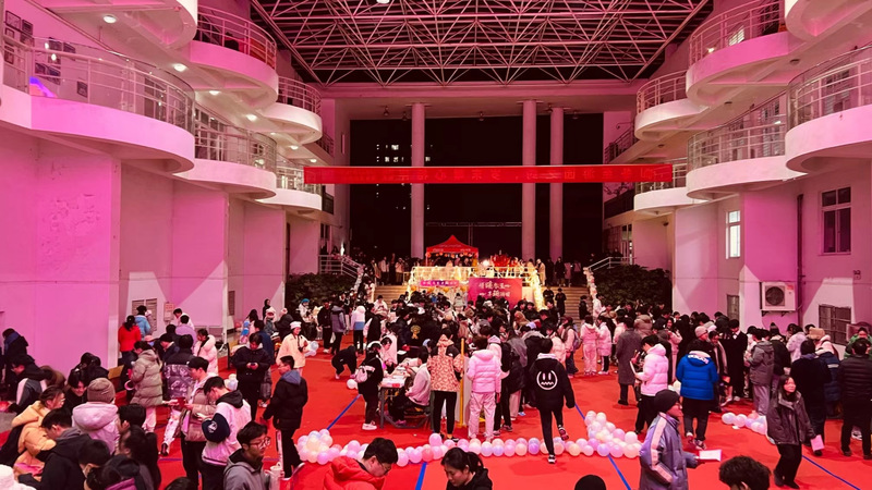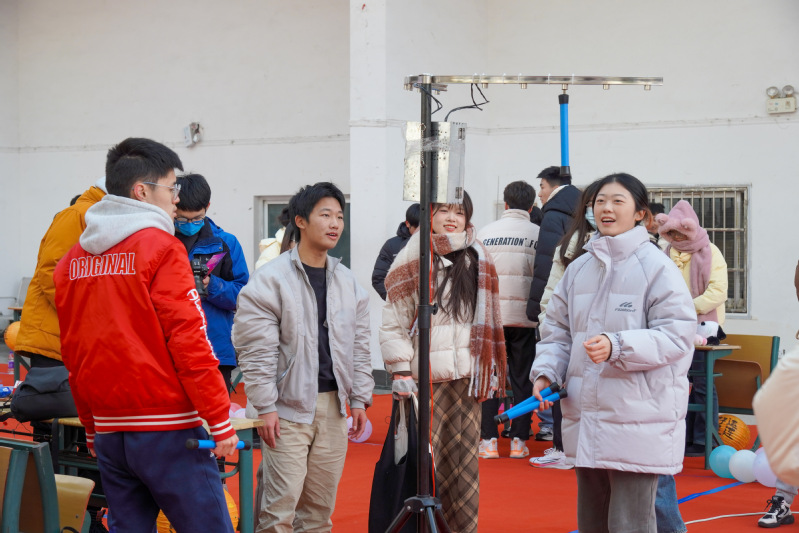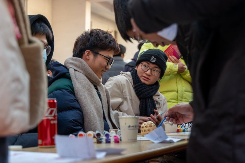 剧院外,学活大厅和舞池内,“情暖冬至 寻趣游园”冬至游园会人潮涌动,各学院学生会精心设计的小游戏吸引了同学们踊跃参加。“贺岁倒计时”“猜灯谜”“摸砖过河”“福气在握”等游戏妙趣横生,让人跃跃欲试;非遗文化体验点扯白糖、面塑、糖画等,让同学们在动手体验中进一步了解中华传统文化的独特魅力,寻找一缕冬至温情。