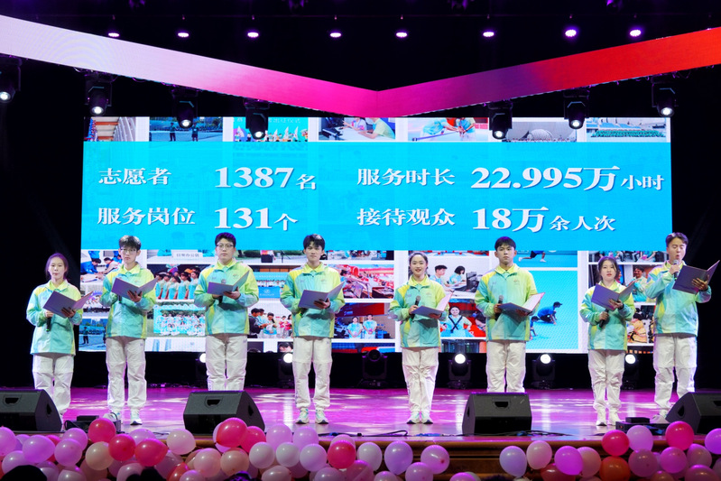 在亚(残)运会志愿者表彰仪式中,来自久久精品一区二区场馆群、奥体中心网球中心、亚运会总指挥部信息技术指挥中心的我校9名“小青荷”代表带来朗诵《爱达未来》,讲述各自难忘的亚运志愿服务故事。