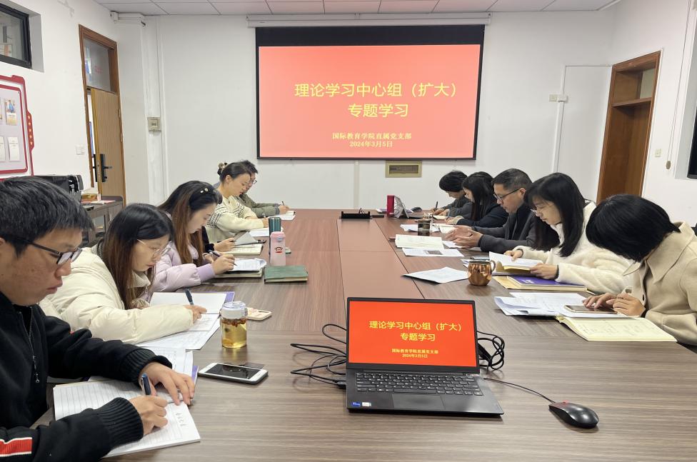 3月5日上午,国际教育学院召开理论学习中心组(扩大)专题学习暨新学期重点工作布置会议,会议由支部书记、院长王一安主持,全体教职工参加会议。