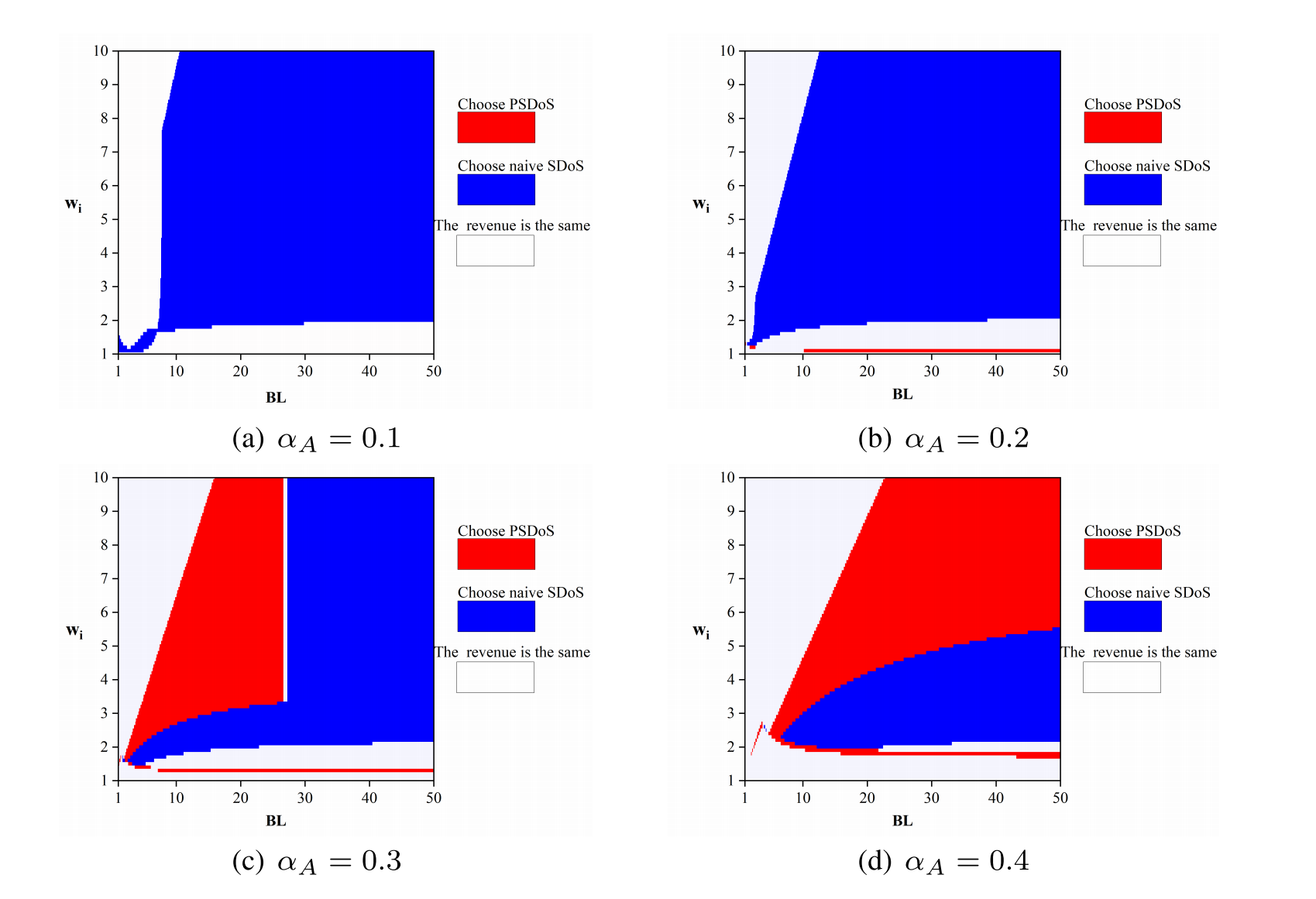 团队在文章《SDoS:Selfish Mining-based Denial-of-Service Attack》中提出了一种新的挖矿攻击方法,基于自私挖矿的拒绝服务攻击(SDoS, Selfish Mining based Denial-of-Service)。在该攻击中,攻击者通过一定策略主动暴露攻击,为诚实矿工提供博弈空间,迫使诚实矿工选择获益最高策略,最终使得攻击者收益上升。研究结果证明,SDoS攻击中博弈层面的拒绝服务攻击与自私挖矿激励互容。与其他挖矿攻击相比,在本文所提出的SDoS攻击中,诚实矿工的挖矿意愿更低(临界盈利能力因子更高),攻击者收益更高(即使基于攻击者最不利假设)。甚至在算力不足50%时,SDoS攻击者就有机会发动51%攻击。研究结果证明本文所提出的SDoS攻击是一种更具威胁的挖矿攻击方法。