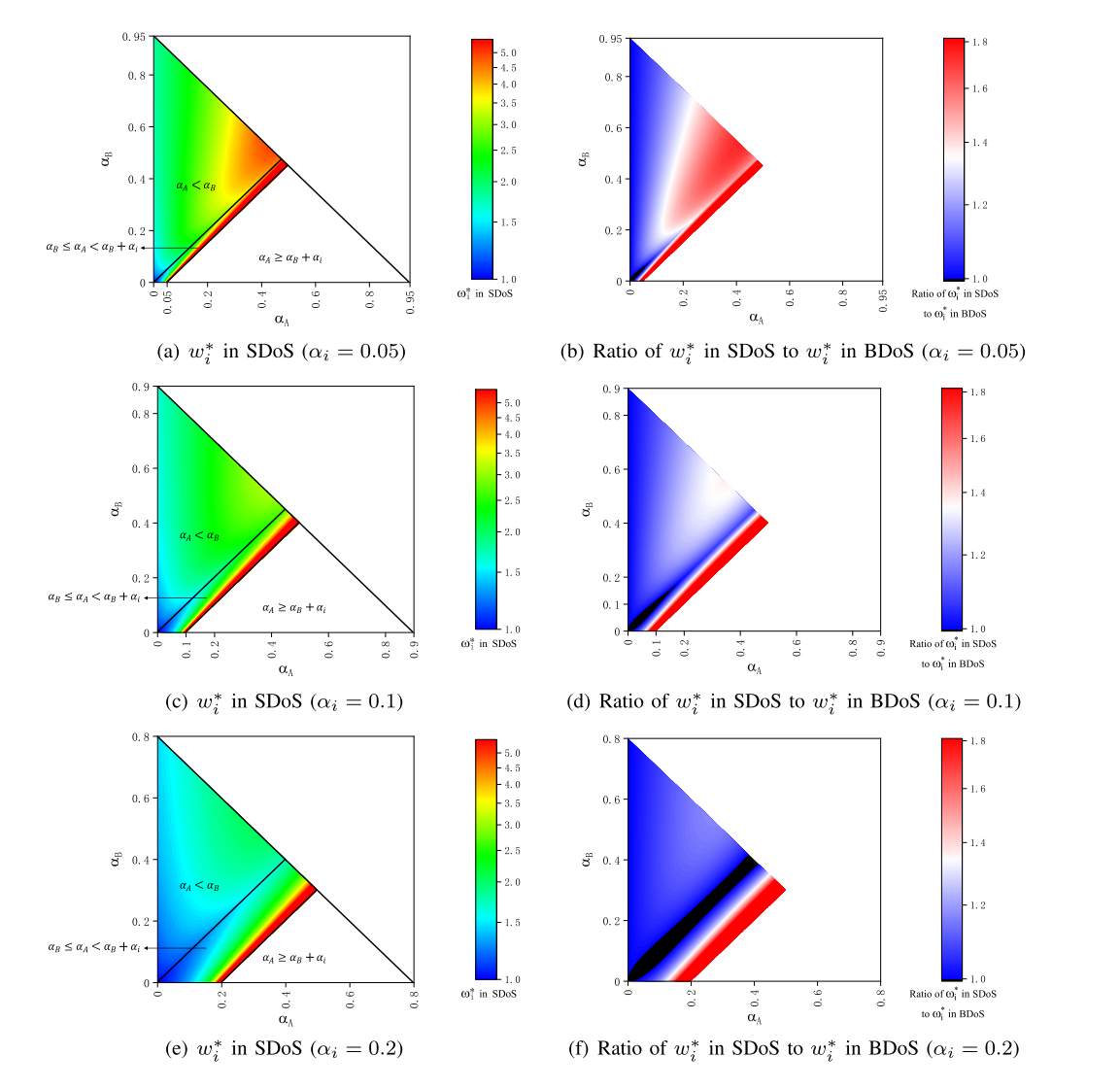 为进一步提高攻击者收益,团队在文章《Optimal Selfish Mining-based Denial-of-Service Attack》中提出了三种更贪心的SDoS攻击策略:竞争贪心SDoS攻击策略—ESDoS、落后贪心SDoS攻击策略—TSDoS、混合贪心SDoS攻击策略—ETSDoS,以及一种更公开的SDoS攻击策略—PSDoS,并求解了不同条件下的攻击者最优策略。在ESDoS、TSDoS、ETSDoS攻击策略中,攻击者试图通过调整保留私有链的策略来降低诚实矿工的挖矿意愿(提高临界盈利能力因子),并进一步浪费诚实矿工算力。在PSDoS攻击策略中,攻击者试图通过调整暴露攻击的策略增大诚实矿工的策略空间,促使诚实矿工选择对攻击者更有利的挖矿策略。最终,通过本文所设计的强化学习算法,确定了基于现实算力分布不同条件下的SDoS攻击者最优策略。实验结果证明,当攻击者采用SDoS最优策略时,攻击者收益增益率得到了进一步提高并明显高于现有的其他挖矿攻击。其中,攻击者掌握14%的挖矿算力就有机会提高收益(自私挖矿中是25%),掌握15%的算力就有机会发动51%攻击。