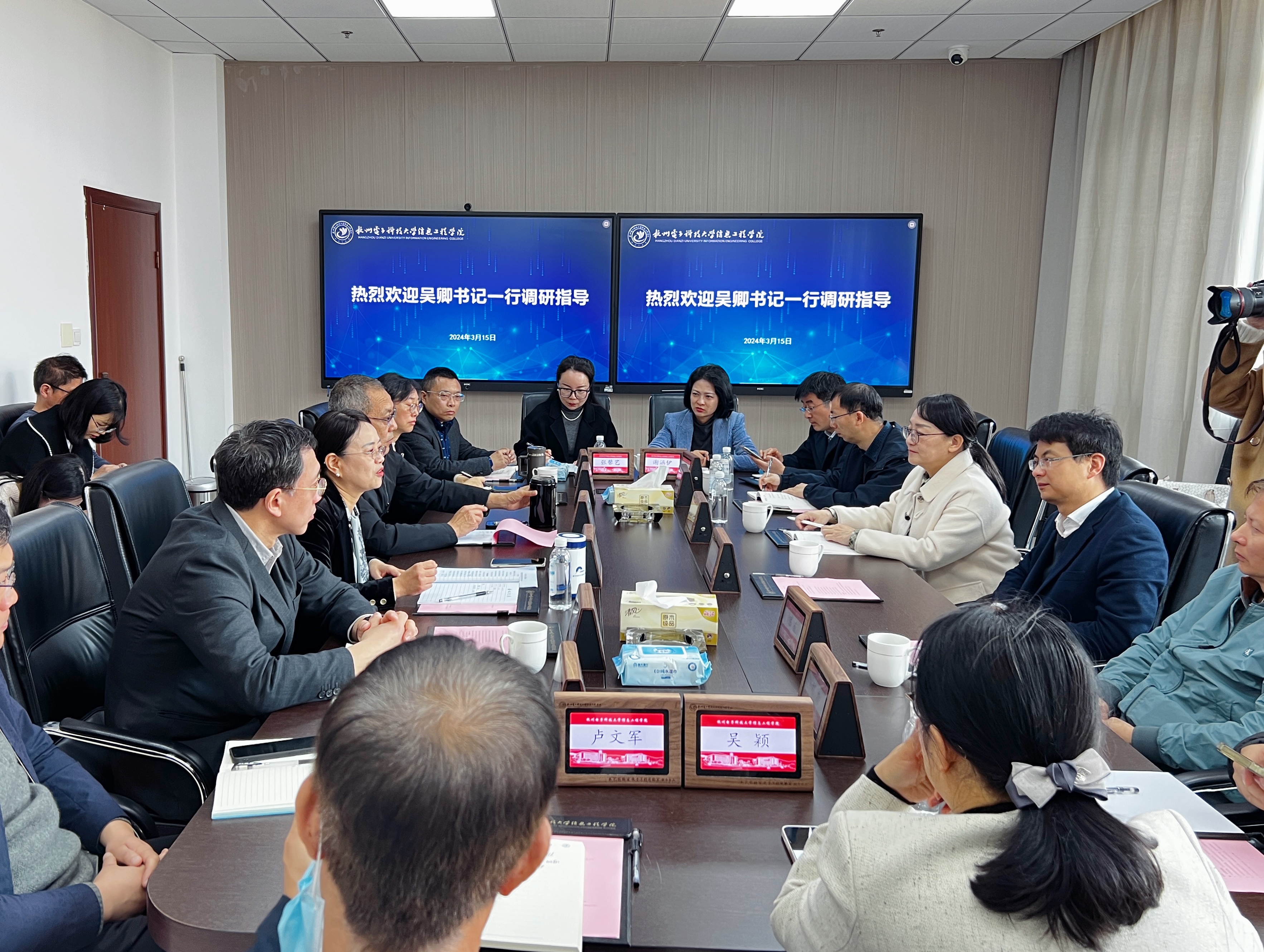 3月15日,校党委书记吴卿、党委副书记钱波以及相关职能部门负责人一行赴信息工程学院青山湖校区调研指导,并与信息工程学院党委书记王艳、院长管力明等学院领导班子成员以及相关职能部门负责人进行了座谈。