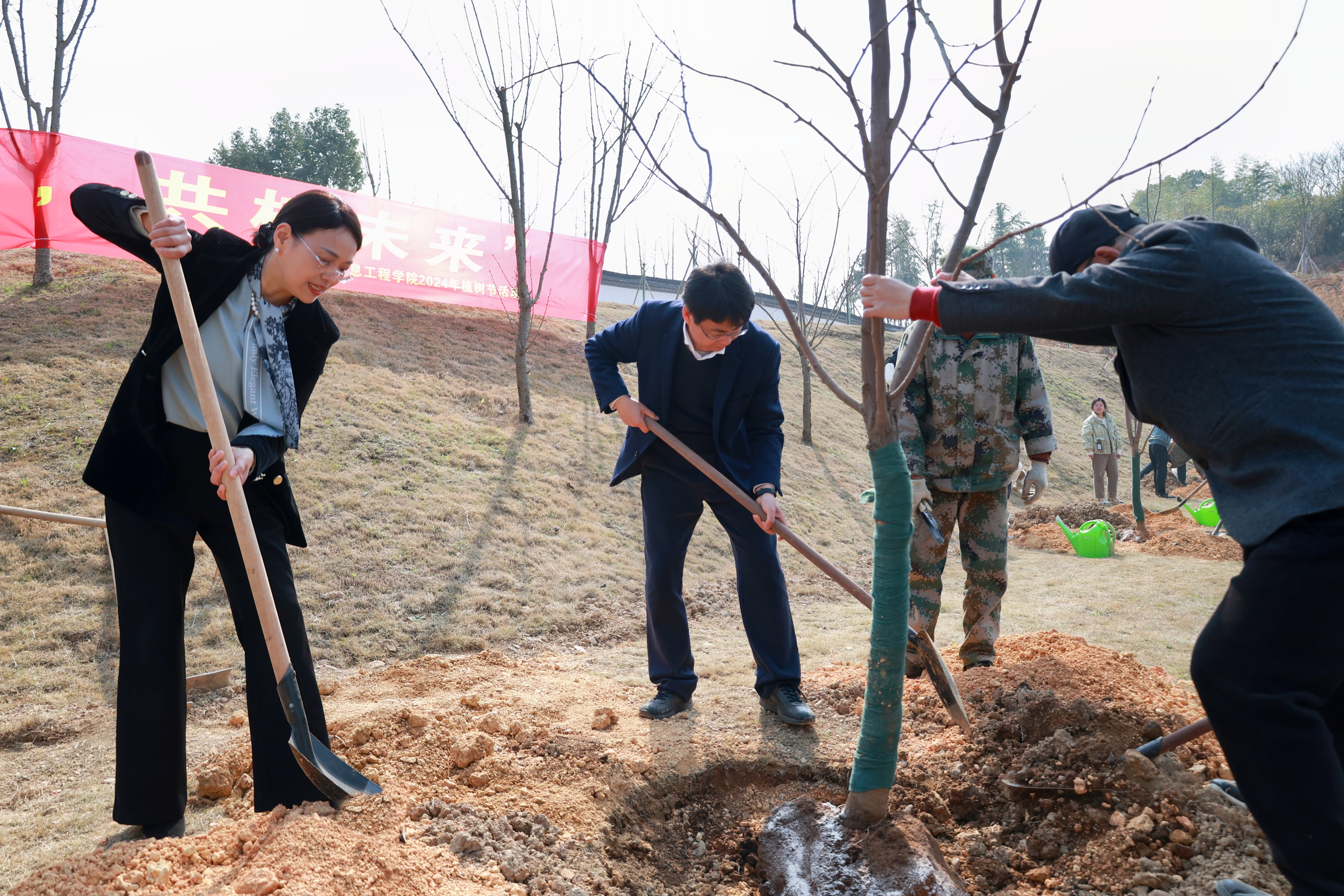 在茶树吐芽、白鹭飞翔、桃花盛开的信工学院校园里,在焕发生机与活力的初春气息里,吴卿带领师生栽种了柿子树,和师生现场交流校园文化活动开展,希望学院继续凝练办学特色。“自然艺术与科技要融入校园文化里”,“要构建身心两安的校园环境”,“每一个学生在校园,都要有榜样,朋辈学习很重要。”他叮嘱信工学院师生们。