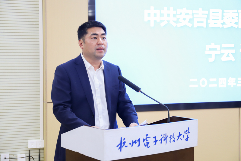 宁云指出,安吉是“两山”理论诞生地,美丽乡村发源地,正围绕现代产业振兴、城乡能级提升、共同富裕先行三大主攻方向,奋力建设国际化山水美好城市,在技术、人才等层面都需要杭电继续大力支持。希望杭电和安吉在后续合作上,一是携手推动产业发展转型。杭电聚焦安吉主导产业发展方向,发挥自身科学优势和专业特长,赋能安吉产业转型升级。二是携手推动人才创新要素集聚。人才是第一资源,安吉围绕招引人才推出了系列政策,希望杭电有更多的人才和成果落地安吉。三是携手推动“两山”实践成果转化。明年是“两山”理论诞生20周年,希望与杭电携手加强研究,助力“两山”理念结出更大实践硕果。