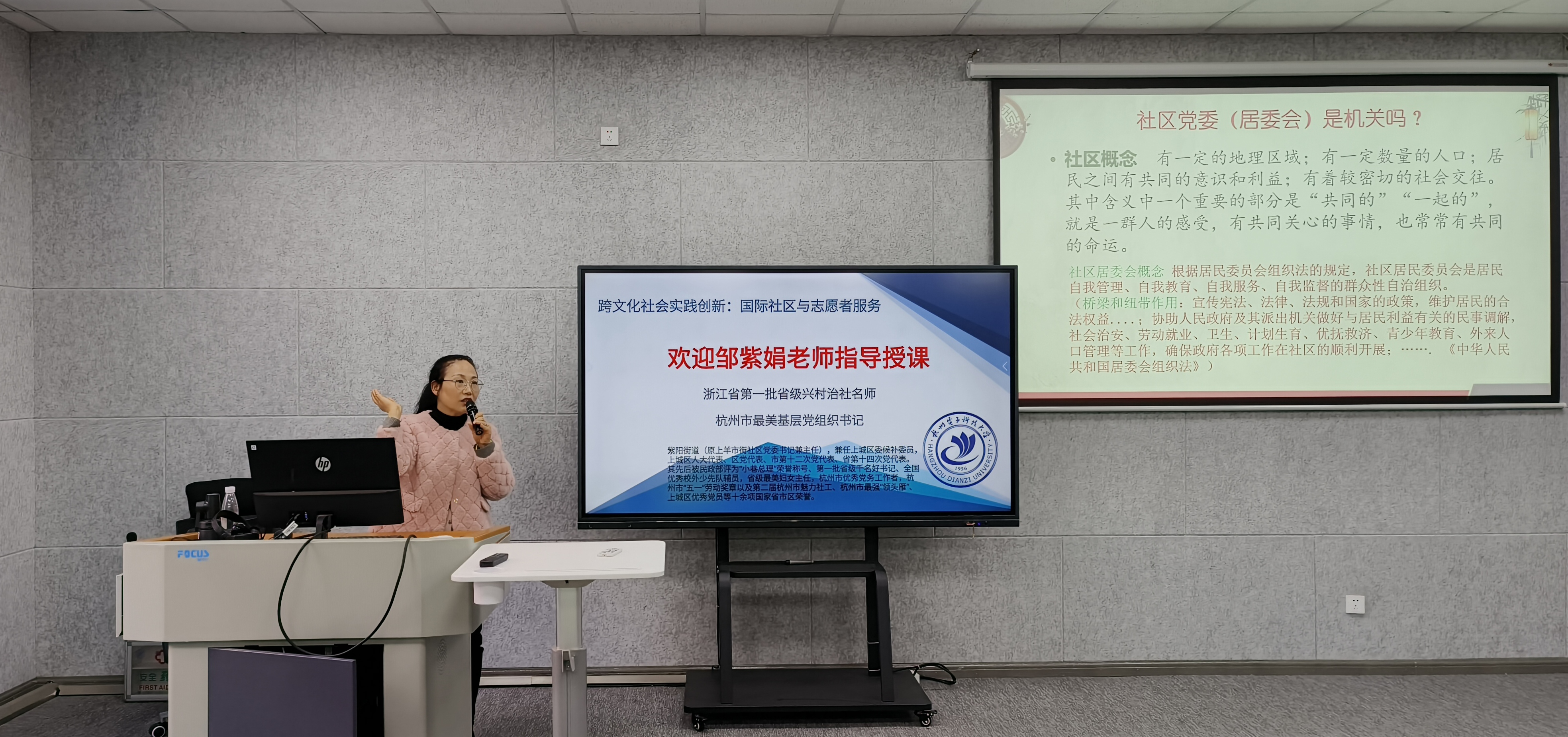 3月20日下午,第一批省级千名好书记、杭州市优秀党务工作者、杭州市最美基层党组织书记、省第十四次党代会代表邹紫娟来校为师生作了以《现代社区治理》为主题的讲座,讲座由理学院党委书记吴一桥主持,国际教育学院院长王一安出席讲座。