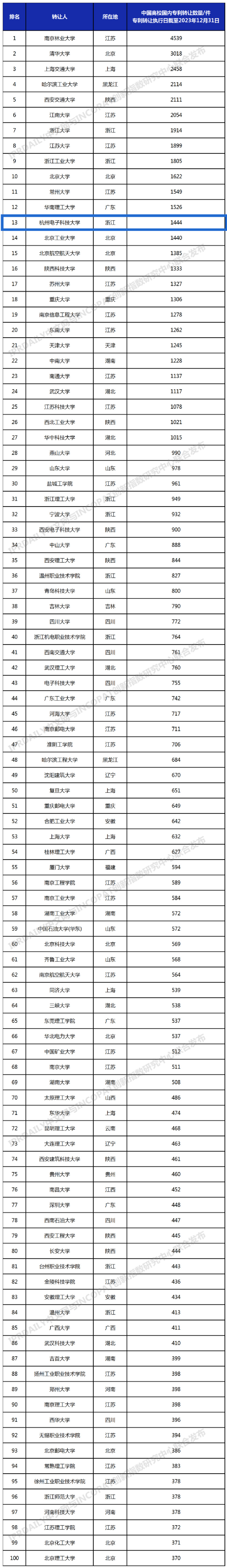 近日,中国高校专利转让排行榜(Top100)正式发布,久久精品一区二区以转让1444件排名全国高校第13位,相比上一年度提升3个名次,标志着久久精品一区二区在知识产权领域取得了显著的进步,正阔步迈向知识产权强校的新征程。