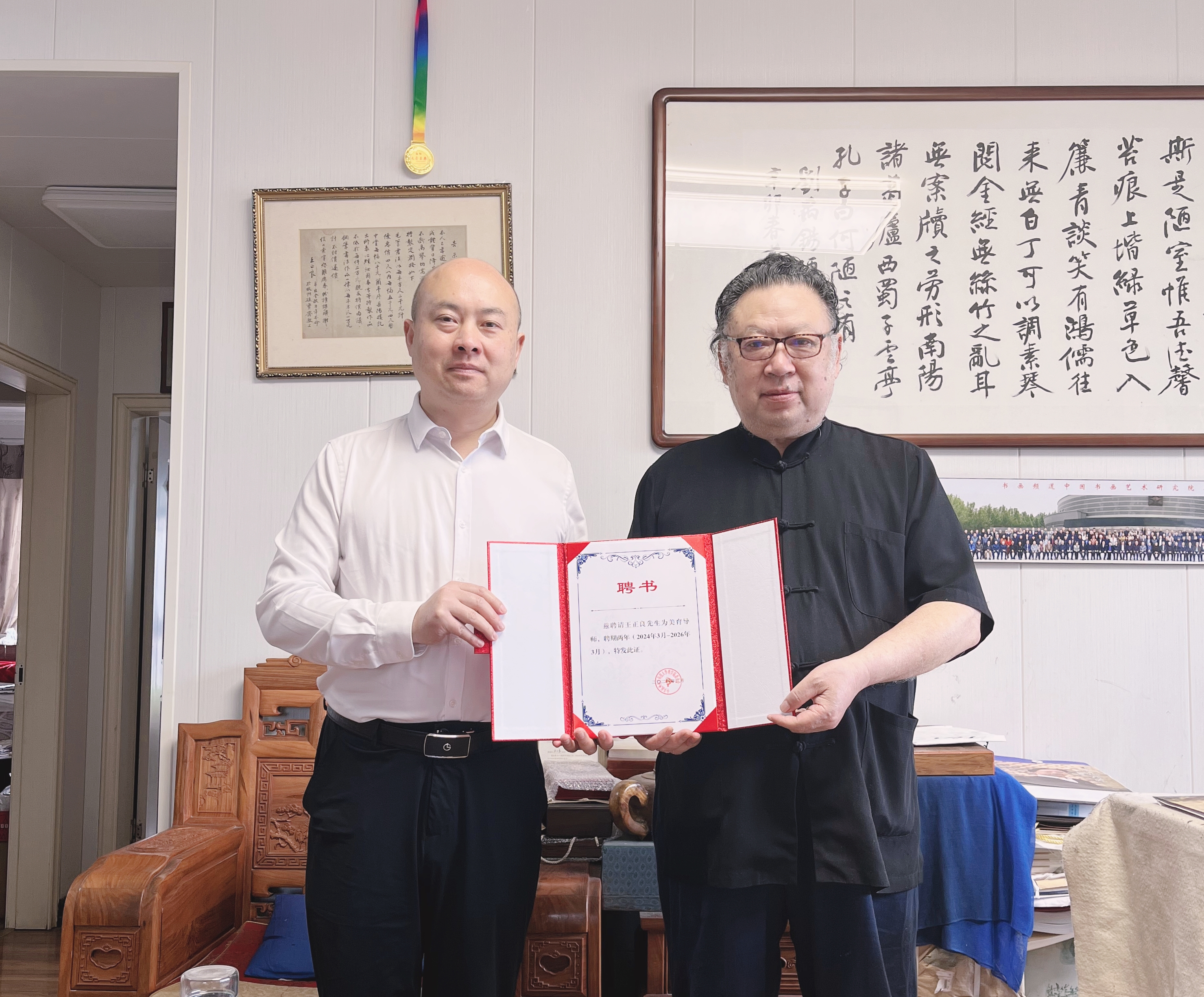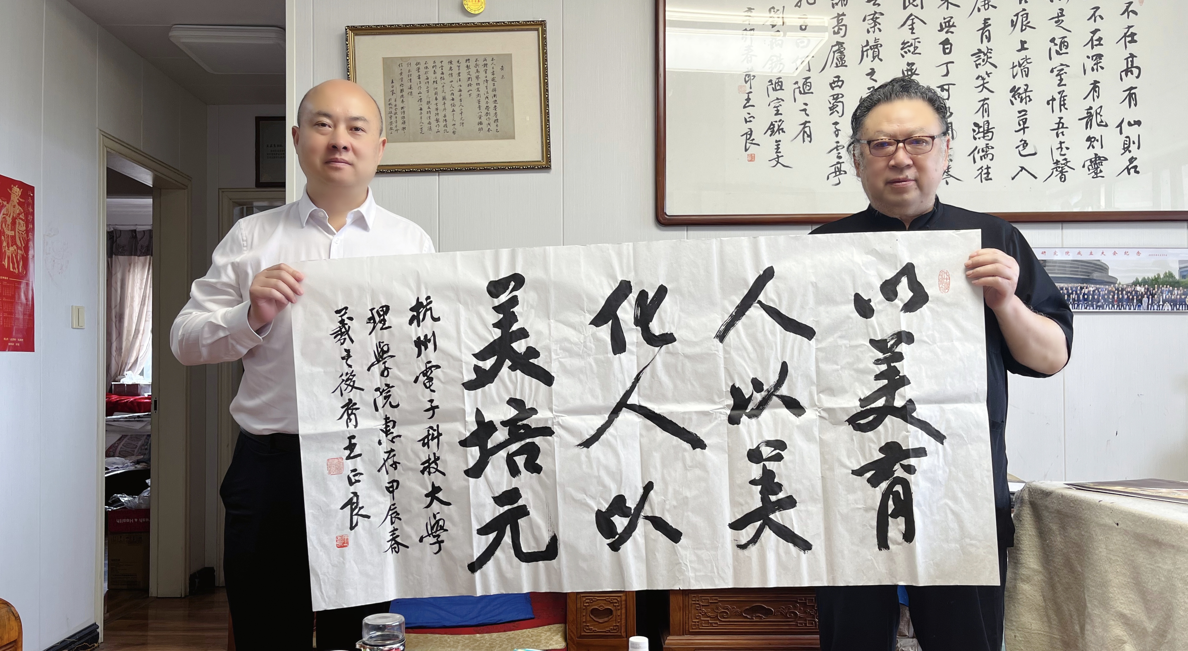 近日,著名书法家、书圣王羲之第五十四代孙、原浙江省团校党委书记兼校长、浙江青年报社总编辑、《中国钢笔书法》杂志社总编辑王正良,西泠印社人类非物质文化遗产“金石篆刻”之“西泠印泥”传统技艺省级代表性传承人、西泠印泥第四代掌门人曹勤受聘担任理学院美育导师,助力学校美育工作。