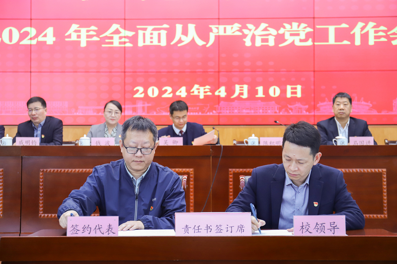 4月10日上午,学校召开2024年全面从严治党工作会议,深入学习贯彻习近平总书记关于党的自我革命的重要思想,贯彻落实党的二十大、二十届中央纪委三次全会和省纪委十五届三次全会精神,回顾总结2023年学校全面从严治党和党风廉政工作,研究部署2024年相关工作任务,推动学校全面从严治党向纵深发展,持续巩固风清气正的政治生态和育人环境,为高水平大学和“双一流”建设提供坚强保障。