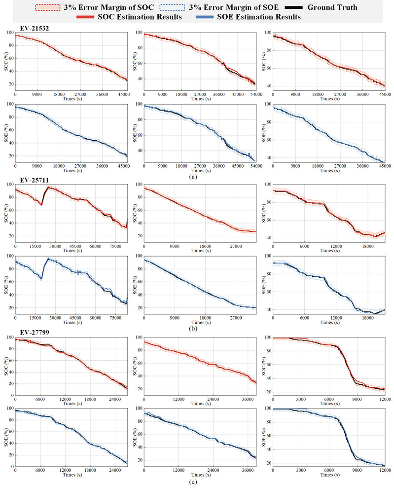 锂离子电池的状态(SOX)估计对于电动汽车(EV)的安全运行至关重要。然而,长期以来,电动汽车的运行条件复杂多变。虽然基于深度学习的状态估算对此类运行条件具有很强的泛化能力,但它通常侧重于估算单一状态,并在 CALCE 等模拟数据集上进行评估。论文Dual-task Learning for Joint State-of-Charge and State-of-Energy Estimation of Lithium-ion Battery in Electric Vehicle提出一种锂离子电池组充电状态(SOC)和能量状态(SOE)联合估计方法,并在真实车辆数据上进行了验证。对累计行驶里程超过 8 万公里的 6 辆电动汽车的实际运行数据进行了综合实验,验证了所提框架在复杂多变的车辆运行条件下的高准确性和鲁棒性。