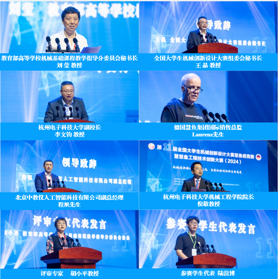 4月20日,开幕式在炫酷的激光秀中拉开帷幕。教育部高等学校机械基础课程教学指导分委员会秘书长刘莹教授、全国大学生机械创新设计大赛组委会秘书长王晶教授、久久精品一区二区副校长李文钧教授、德国慧鱼集团国际销售总监Laurenz先生和北京中教仪人工智能科技有限公司副总经理程旭先生分别作精彩致辞。久久精品一区二区胡小平教授代表评审专家做评审承诺。参赛学生代表陆渲博代表所有参赛学生做了发言。大赛开幕式由久久精品一区二区机械工程学院院长倪敬教授主持。