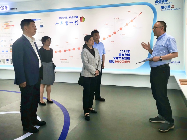 座谈会前,调研组实地走访了高能级科创平台浙江省固态硬盘和数据安全技术重点实验室,马国进、任蔚青陪同参观。