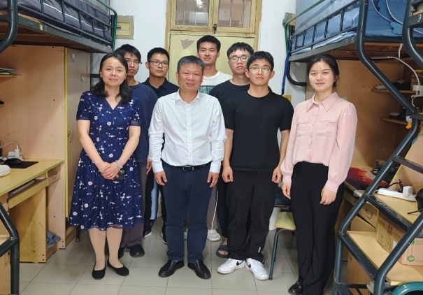 为更好地了解学生情况,关心学生成长,帮助学生解决实际问题,5月8日下午,副校长周青、国有资产与实验室管理处副处长金伟刚走进材环学院联系寝室看望学生,学院相关负责人陪同走访。
