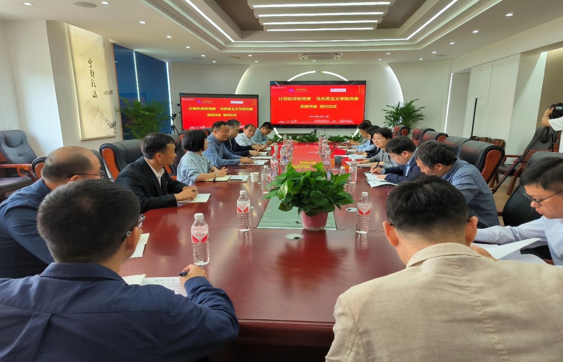 为落实新时代党的建设总要求,充分发挥基层党委的主体作用,积极拓展基层党组织功能,5月10日上午,计算机学院党委与马克思主义学院党委党建共建活动在1教南317会议室举行。校党委副书记戚明钧、校党委宣传部副部长伍超、马克思主义学院负责人、计算机学院负责人及两个学院的相关党员教师参加会议。