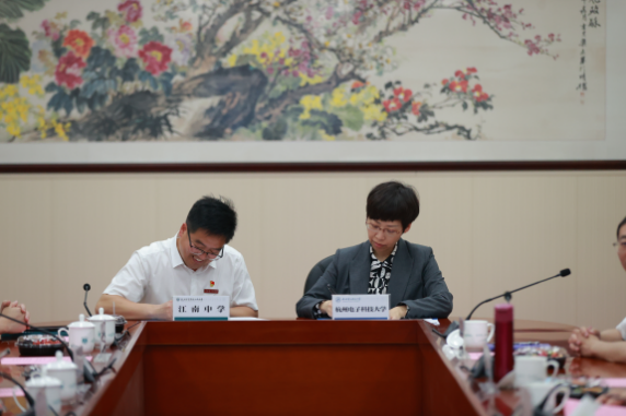 仪式前,双方签约设立“杭电学生科创基金”,旨在鼓励和支持我校学生在科技创新方面的探索与实践。仪式上,教务处处长林菲教授受聘担任附属江南中学学术校长,为附属学校的教育教学和科研工作注入杭电力量,也标志着附属学校在教育管理层面的进一步发展和完善。