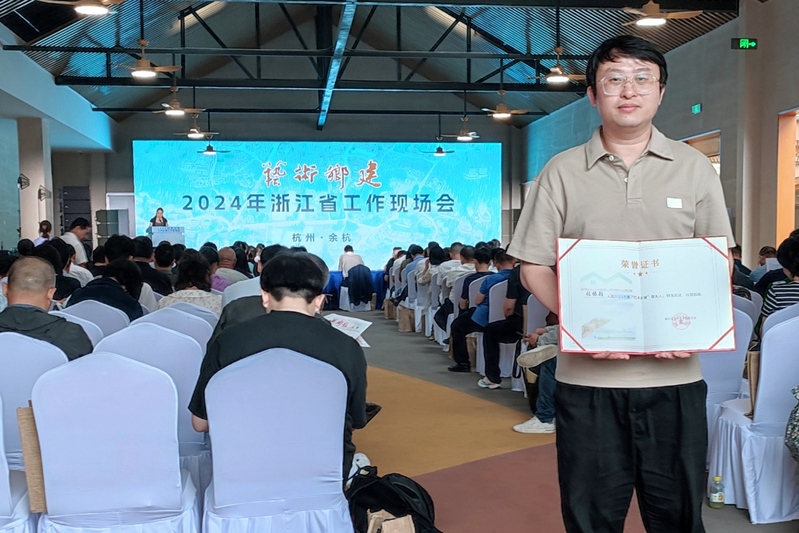 5月30日下午,2024年浙江省艺术乡建工作现场会在杭州市余杭区黄湖镇青山村举行。会上,浙江省文学艺术界联合会宣布了首批35个“浙江省艺术乡建特色村”、19个2024年“艺术乡建”典型案例,以及25位2024年“艺术乡建”带头人,并颁发证书。我校人文艺术与数字媒体学院产品设计系副主任张振颖老师入选浙江省2024年“艺术乡建”带头人。