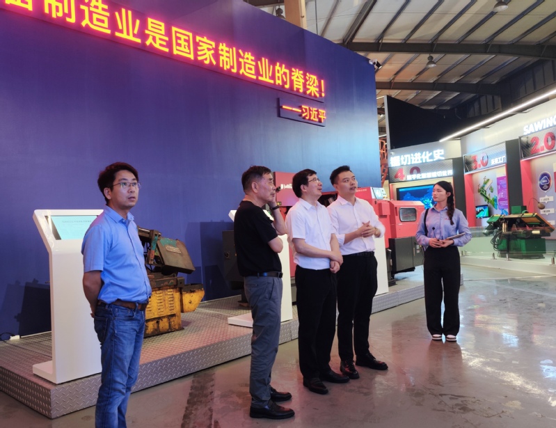 在国家高新技术企业、国家专精特新“小巨人”企业、浙江省“隐形冠军”企业——浙江畅尔,戚明钧一行参观了现代化装配车间,了解了畅尔自主研制的高端拉削装备系列产品,重点察看了用于航天航空领域的工业母机研制成果,并对企业人员结构和人才需求等方面进行详细了解。