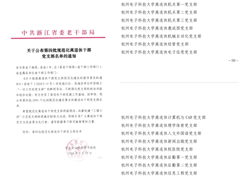 浙江省离退休干部示范党支部和规范化党支部名单公布,我校皆有上榜