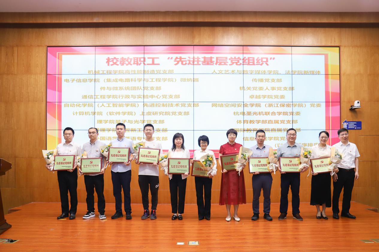 6月28日,我校在下沙校区七教127举行“党建引领强根本 凝心铸魂谱新篇”庆祝建党103周年暨七一表彰大会。 校党委书记吴卿,校党委副书记钱波,校党委副书记戚明钧,校党委委员、纪委书记任蔚青,校党委委员、宣传部(教师工作部)部长陈云,各党群部门负责人、二级党组织书记和师生党员代表出席大会。会议由校党委委员、组织部(统战部)部长孔万增主持。