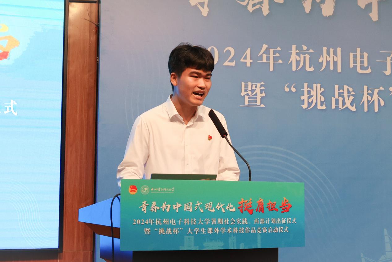 7月5日,学校举行了2024年志愿服务西部计划志愿者出征仪式,机械工程学院研究生朱奇源作为志愿服务西部计划志愿者代表发言。他表示,要用汗水和智慧践行自己的理想,用具体而切实的行动做好志愿服务工作,在服务西部、服务地方中锤炼本领、增长才干,在爱国爱校的情怀中不断奋进,将个人力量融入祖国发展大局中。