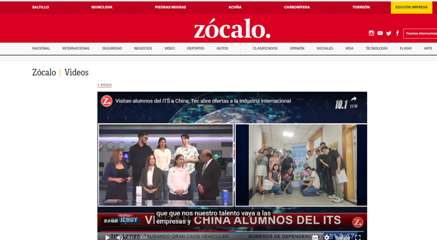 近日,墨西哥科阿韦拉州权威媒体Zócalo就萨蒂略科技大学(ITS)与我校的国际合作进行了专访。萨蒂略科技大学校长Ania、国际处专员Maria老师及三名参加今年暑期“汉语桥”夏令营的学生代表受邀接受了采访。ITS师生全面介绍了两校合作情况,分别从校方和学生两个角度展示了双方合作的成果,并展望了2025年合作的美好前景。
