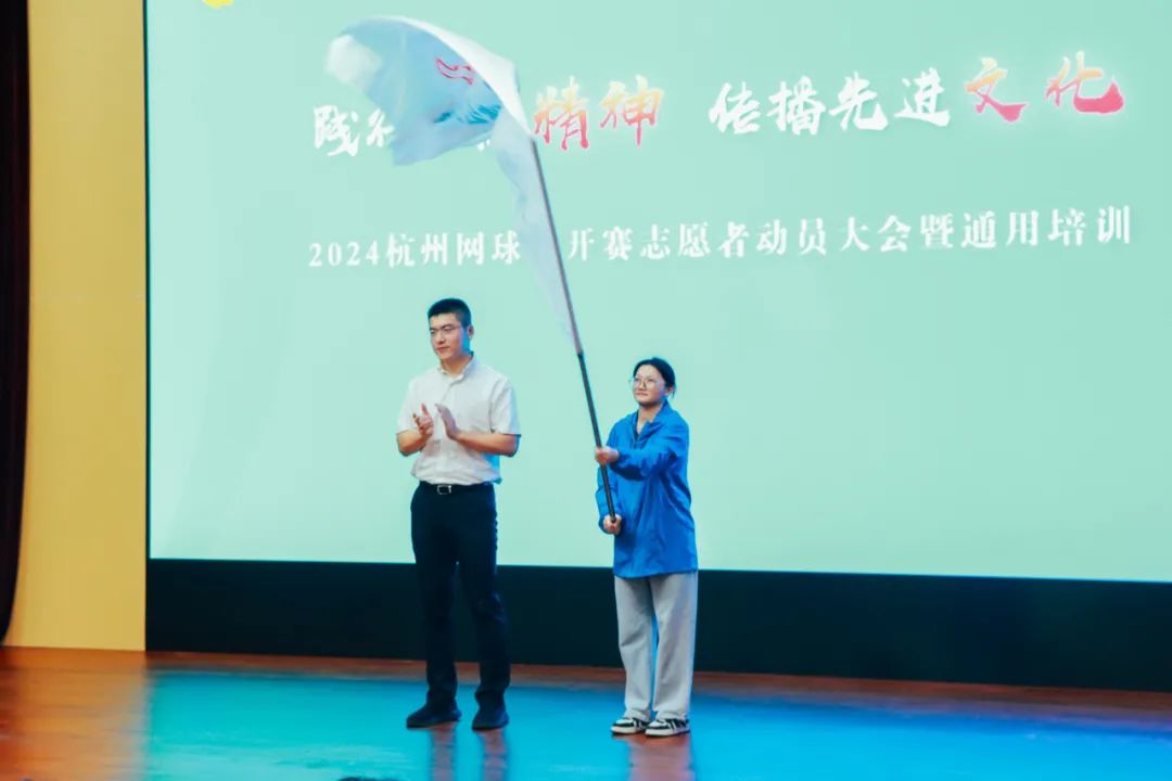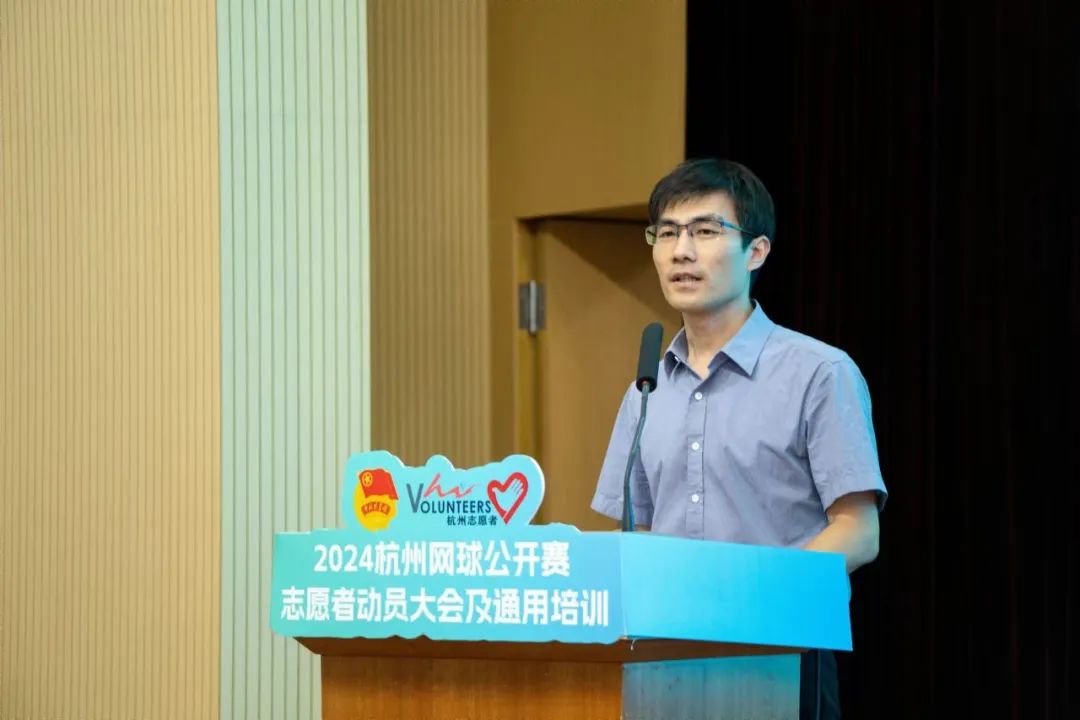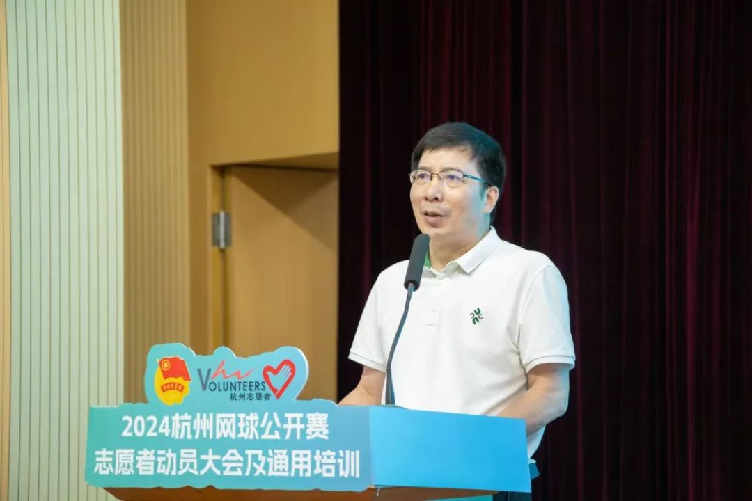 杭州市体育集团党委委员、副总经理郑吉林介绍赛会情况。2024杭州网球公开赛是杭州首次承办的职业网球赛事,更是一次代表世界职业男子网球最高竞技水准的比赛,意义重大。他希望志愿者能秉持奉献精神、展现专业素养、强化团队协作、维护良好形象,遵守赛事规定和志愿者行为规范,以文明、礼貌的言行展现学校和杭州的风采。