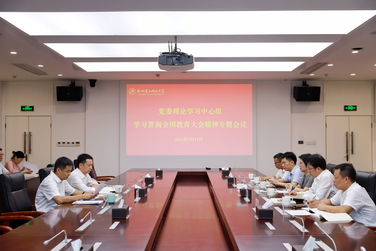 会议强调,全校上下要牢牢把握教育的政治属性、人民属性、战略属性,坚定不移走中国特色社会主义教育发展道路,高站位抓部署、高标准抓融合,加快建成高水平研究型大学,为教育强国建设贡献杭电力量与担当。一是要抓好学习宣传,推动全国教育大会精神入脑入心。全校要把学习好贯彻好全国教育大会精神作为当前和今后一个时期的重大政治任务,把学习宣传贯彻全国教育大会精神与学习宣传贯彻党的二十届三中全会精神、学习宣传习近平同志《论教育》紧密结合、一体推进,全方位学习宣传、全覆盖专题培训、全景式研究阐释,迅速掀起学习贯彻热潮,将全国教育大会精神学习成果转化为推动学校事业高质量发展的强大动能。二是要抓好贯彻落实,用全国教育大会精神引领发展。要提高政治站位扩大工作格局,坚持问题导向、系统思维,在办学治校水平、内部治理能力、人才培养模式、教师队伍建设等领域深化改革创新,把大会精神转化为杭电方案,主动作为、攻坚克难,推动全国教育大会精神工作部署在杭电落地生根、开花结果。三是要抓好统筹推进,在教育科技人才一体化上树标杆。全面实施好新时代立德树人工程,系统塑造立德树人的新生态新格局,坚持不懈用习近平新时代中国特色社会主义思想铸魂育人,培养更多堪当民族复兴重任的拔尖创新人才。全面加强高素质专业化教师队伍建设,大力弘扬和践行教育家精神,加快形成具有竞争力的人事人才制度体系,提升教书育人能力。全面提升科技创新能力,坚持“四个面向”,建立以科技发展、国家战略需求为牵引的学科设置调整机制,完善科技创新体制机制,进一步加强有组织科研,让更多科技成果尽快转化为现实生产力,为新质生产力发展、高水平科技自立自强作出积极贡献。