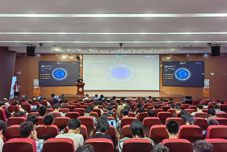 在互动交流环节,同学们提出了“对于大学本科生来说,我们能为太空垃圾的防治做些什么?”“关于太空垃圾应对策略中数据控制方面的最新研究?”等问题。李语强鼓励同学们通过学习光学望远镜、激光测距相关的知识,如光学、控制自动化、数据处理以及数学、物理等,为太空垃圾的探测贡献力量。