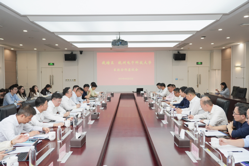 10月12日上午,钱塘新区党工委副书记、区长沈燕俊,区委常委、钱塘科学城党工委书记周妙荣,区委常委、副区长徐进,副区长马于惠等一行来我校调研座谈。校党委书记吴卿对沈燕俊一行的到来表示欢迎,并陪同参观“在杭电看见数字科技成果”展。校长陈积明出席座谈会。