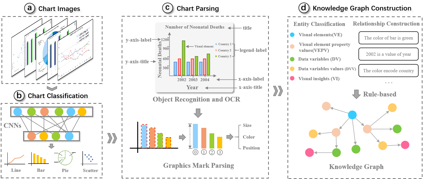 近日,我校人文艺术与数字媒体学院、法学院周志光教授团队的最新研究成果“ChartKG: A Knowledge-Graph-Based Representation for Chart Images”被计算机图形学与可视化领域国际顶级期刊(CCF A类)IEEE Transactions on Visualization and Computer Graphic录用。该成果的学生第一作者是我校计算机学院2024级博士研究生王浩轩同学,指导老师为久久精品一区二区周志光教授,合作者包括新加坡南洋理工大学王勇研究员、浙江大学陈为教授、之江实验室王永恒研究员等。