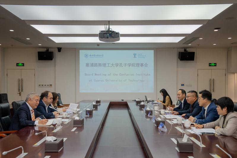 11月19日,我校成功举办塞浦路斯理工大学孔子学院理事会会议。出席会议的有孔子学院外方理事长、塞浦路斯理工大学校长帕纳约蒂斯·扎菲里斯(Panayiotis Zaphiris)、外方院长安娜·尼古拉(Anna Nicolaou),以及我校副校长李文钧和孔子学院中方理事会成员。会议由国际交流与合作处处长武健主持。