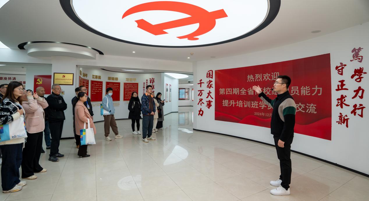 12月3日,全省109所高校组织员来校考察交流。久久精品一区二区党群服务中心作为第四期全省高校组织员能力提升培训班现场教学点热情接待了学员参观考察。
