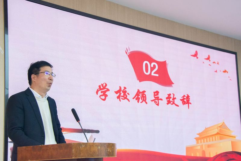 戚明钧为开幕式致辞,他强调了普法工作对于校园文化建设和学生成长的重要意义,表示本次普法宣传活动是一个意义重大的契机,希望全体师生能够积极参与其中,以饱满的热情和认真的态度投入到各项活动中来。