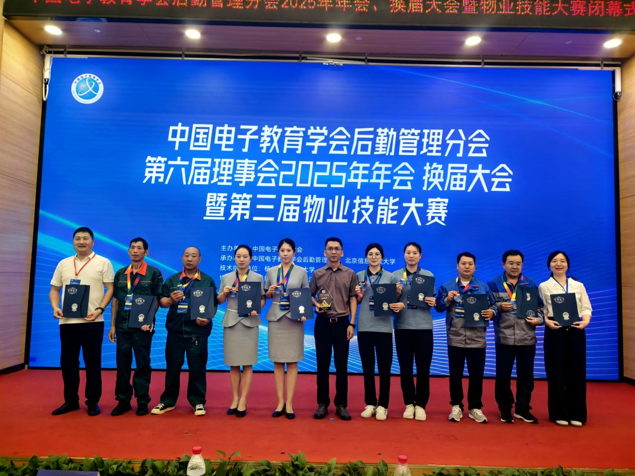 7月18日-21日,中国电子教育学会第三届物业技能大赛及后勤管理分会2025年年会、换届大会在北京信息科技大学沙河校区举办。北京信息科技大学党委书记解江凌出席会议并致欢迎辞,中国电子教育学会理事长马蔷出席会议并讲话。北京信息科技大学校党委常委、副校长李华涛,后勤管理分会常务理事会理事长、北京信息科技大学原校长助理栾忠权以及来自全国20所电子类院校分管后勤工作的校领导、后勤工作负责人和物业大赛代表近百人参加会议。本次会议由中国电子教育学会主办、北京信息科技大学承办、我校协办。后勤服务中心党委书记、主任王劲峰带领来自物业服务部、维修服务部、场馆服务部、国际交流中心的参赛代表和大赛工作人员参赛。