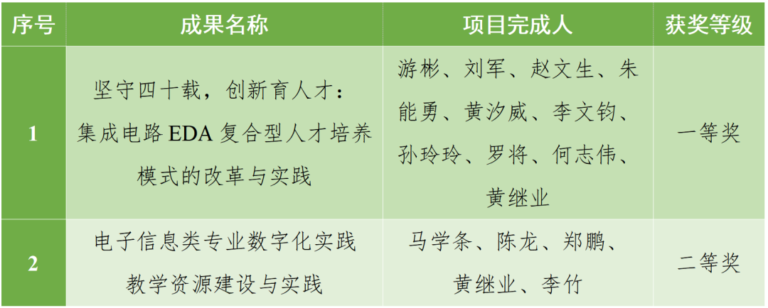 我校在首届全国电子信息教学成果大赛中荣获 一等奖和二等奖