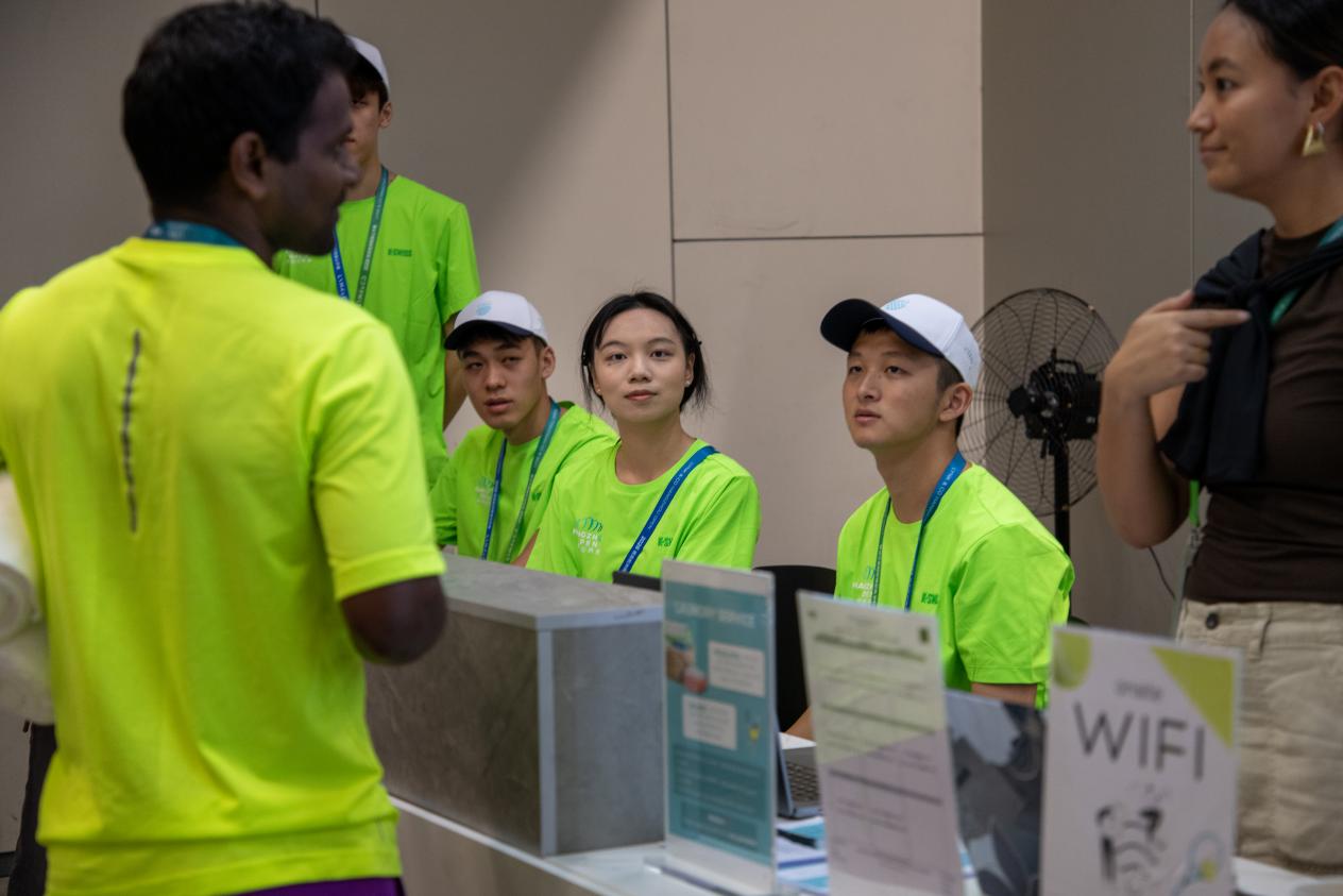 开赛第一天早上,“小青荷”们已整装待发。烈日下的网球赛场上,场地服务领域的志愿者们全力以赴,挥汗如雨。他们在演练中准备比赛物资,随时补充,帮助球员在局间有效恢复体力。紧张赛程中,来自卓越学院的李卓曦和运动员们同样心如擂鼓,他在赛后流着汗分享:“从搬运物资到布置场地,每一个环节都充满了新的挑战;汗水背后,是团队协作的温暖和赛事顺利启幕的成就感,正是这些看似微不足道的瞬间,让我真切体会到志愿服务中最真挚的感动与力量。”