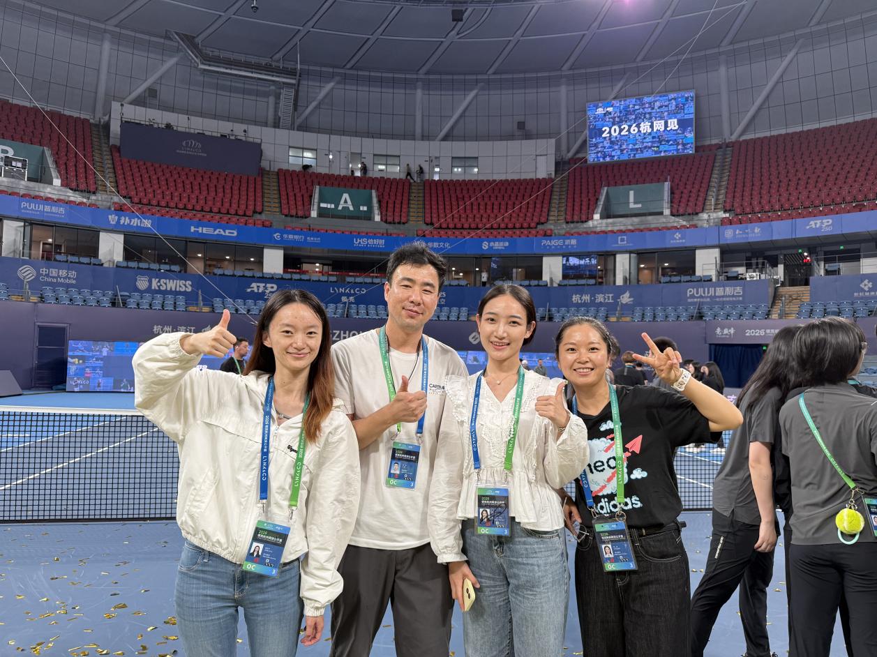 9月16日至23日,2025杭州网球公开赛在杭州奥体中心网球中心举行。我校2名教师领队和268名学生志愿者以最具亲和力的微笑和周到细致的服务,全情服务于公开赛15个领域、20个岗位,累计服务时长达1.67万余小时,接待观众近10万人次,为赛事的圆满举办贡献杭电青春力量。